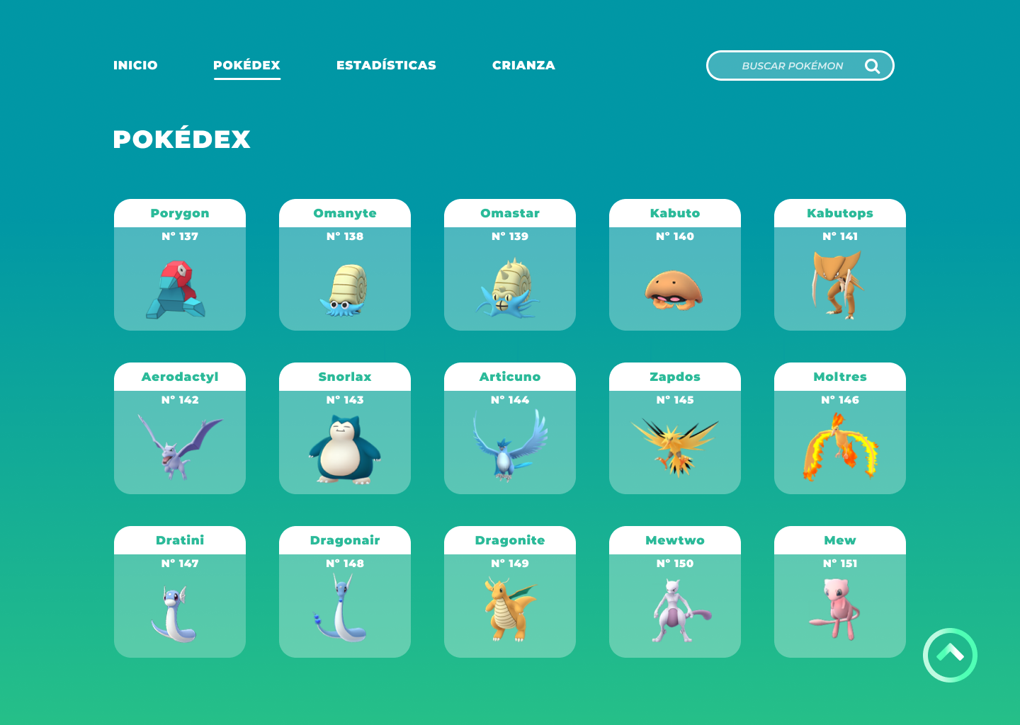 “Yo como jugador nivel medio de Pokémon Go quiero llegar fácilmente al final y al principio de la página para visualizar los primeros y últimos Pokémon de la lista”