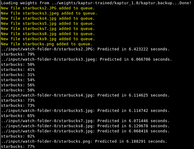 Watch folder: Images that are dropped into the watch folder are added to a queue and then run through the network for logo detection.