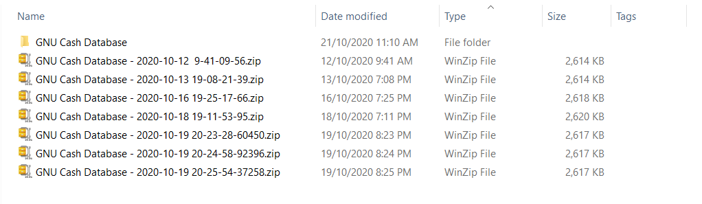 - Maintains several copies of the back up for historical reason. (There are times you can't quite remember what you did and some entries are missing. You can track the missing entries on those historical backups)