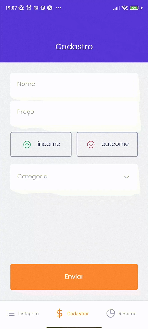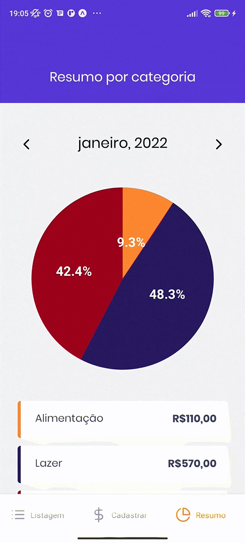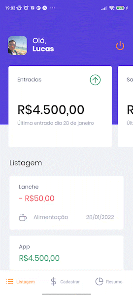 Assim, nesse projeto criamos a listagem geral de gastos e faturamentos, além do cadastro e do gráfico sobre a rentabilidade do usuário utilizando os conceitos e tecnologias já citadas aqui envolvendo o React Native como o uso e configuração do Expo, Style Components, Flatlist, Contexto, hooks, autenticação, navegação e formulário e por fim armazenamento local por meio do Async Storage.