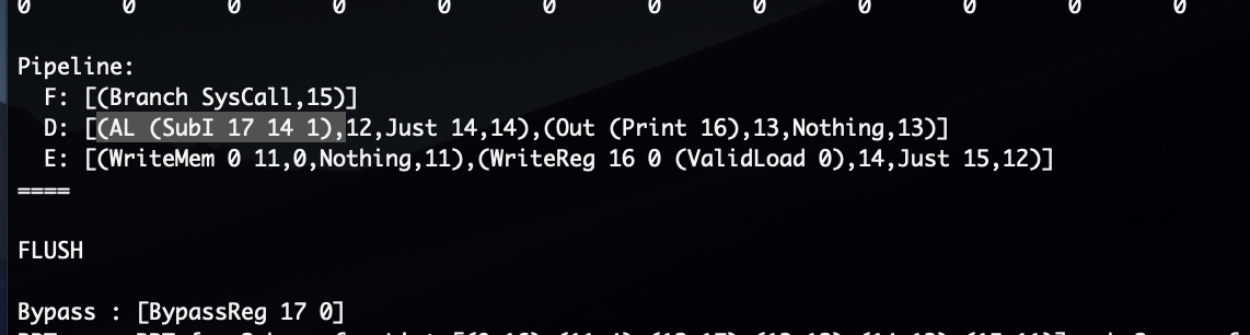 Here, SUBI 12 12 1 was transformed into SUBI 17 14 1 by decode step. However, it never got a chance to execute because the pipeline was flushed, but RRT was not restored.