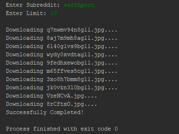- Enter the name of the desired subreddit and the number of images to download.