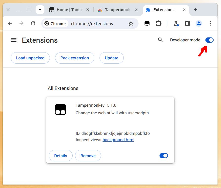 - You need an extension to run this script. We recommend Tampermonkey.