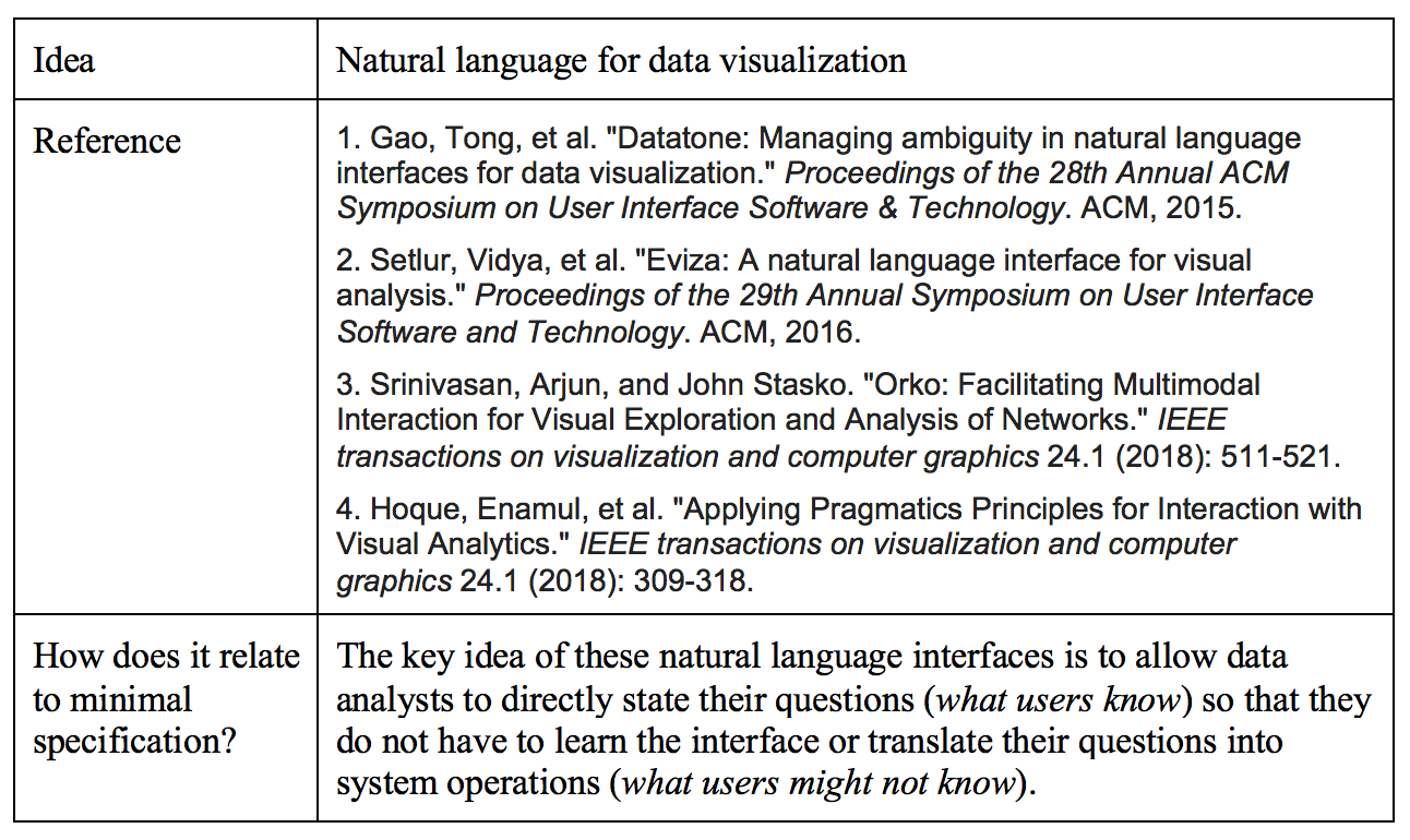 To address execution barriers, minimal specification allows users to focus on what they know (the objects of interest in answering a pairwise comparison question) rather than what they might not know (system operations).