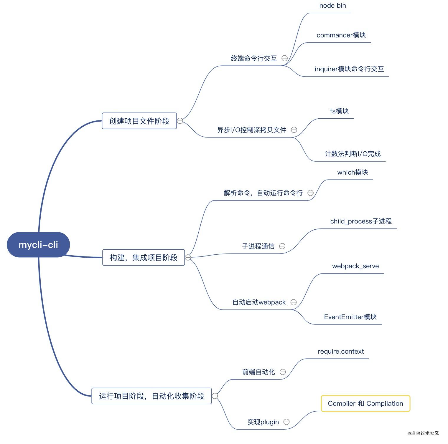 我们希望用一条命令行,实现项目创建,依赖下载,项目运行,依赖收集等众多流程。如果一口气设计整个功能,可能会感到脑袋一片空白,所以我们要学会分解目标。实际纵览整个流程,主要分为 创建文件阶段 , 构建,集成webpack阶段 , 运行项目阶段 。梳理每个阶段我们需要做的事情。