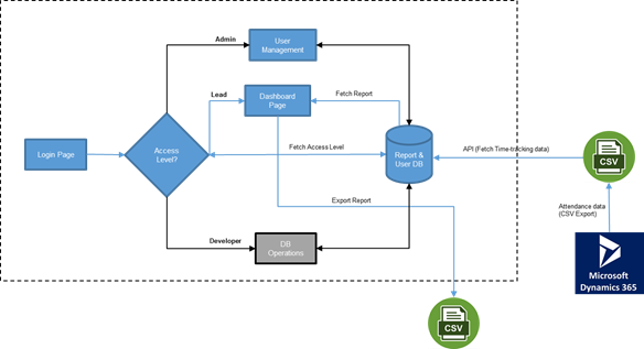 • Implement batch job to fetch time-tracking information from MS Dynamics and upload relevant tables