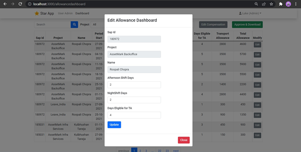 The team members working in non-standard shift get a shift allowance. This is calculated based on the attendance information collated by team leads. Currently, the process of calculating and validating this information is manual and involves Excel and email. The objective is to build a web application that uses the attendance data exported from MS Dynamics as input and generates the shift allowance report. The application would also build in authorization flow for validation and approval of this report.