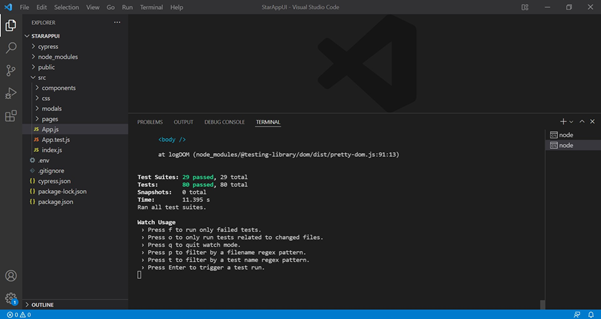 Cypress Automation Screen – Consisting of two Automation Test Scripts