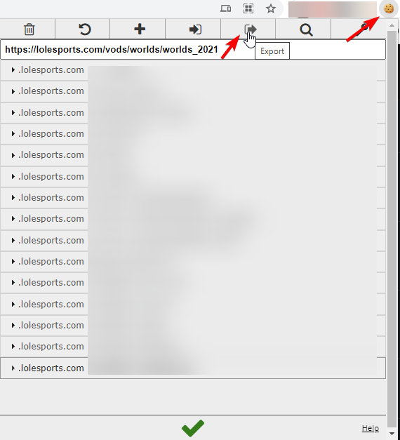 - Using EditThisCookie, open the extension and hit the Export button to copy your cookies to your clipboard.