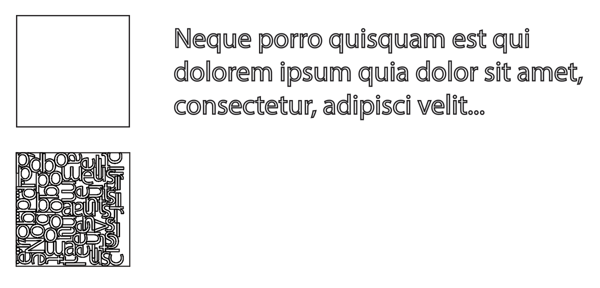 We want to pack all the letters into the square, using as little material as possible. If a single square is not enough, we also want to minimize the number of squares used.