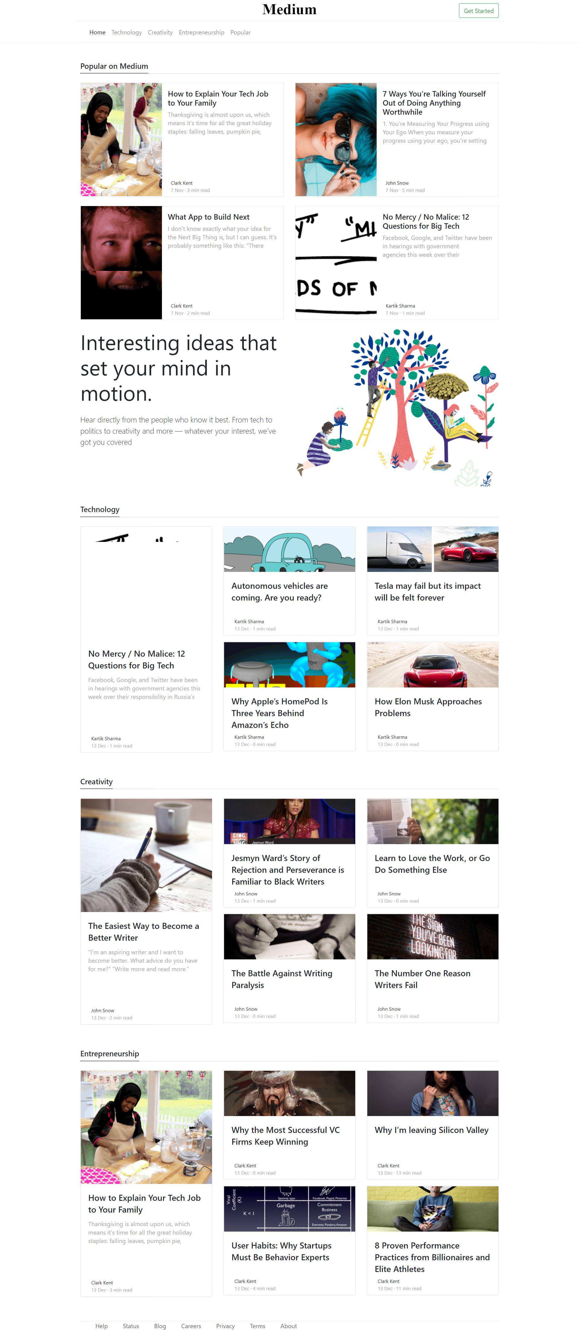 It is a responsive mini mock up of Medium. This project was part of training at Nagarro which was provided by Codingblocks.
