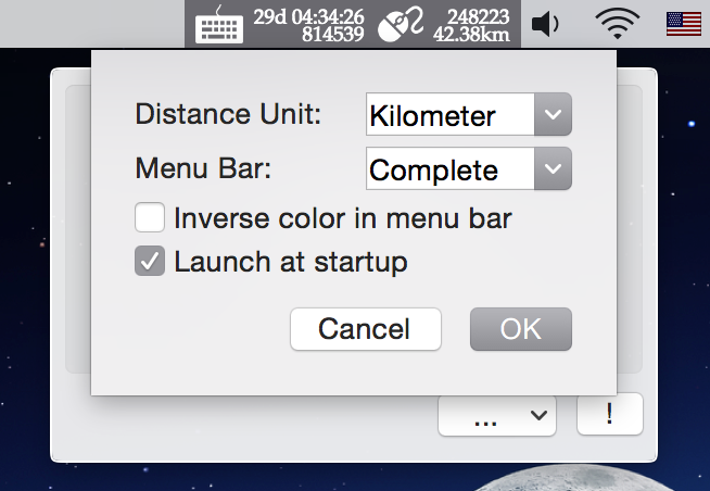 With OctoMouse, you will be able to always keep under your eyes how far did you travel with your mouse/trackpad, how many times did you press a key, how long did you use your computer and so on.