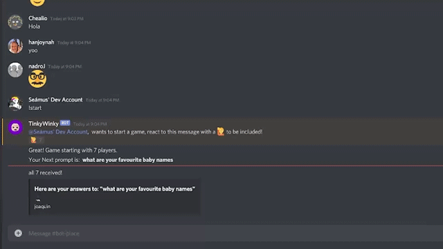 - Once someone has used the start command everyone that wants to play should react with the emoji the bot puts.