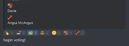 - Once the bot says so, vote for your favouraite by reacting with the appropriate emoji.
