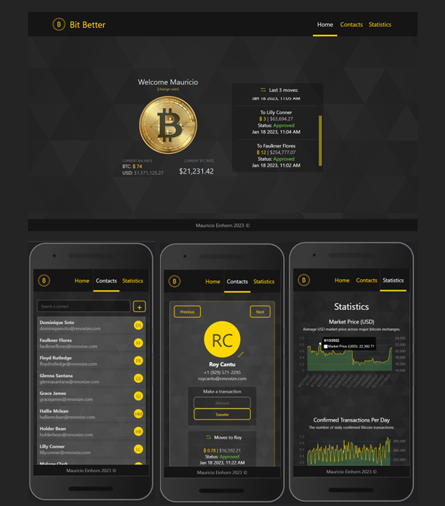 Bit Better is a simple app in which you can manage your contacts and make BitCoin transactions to them.