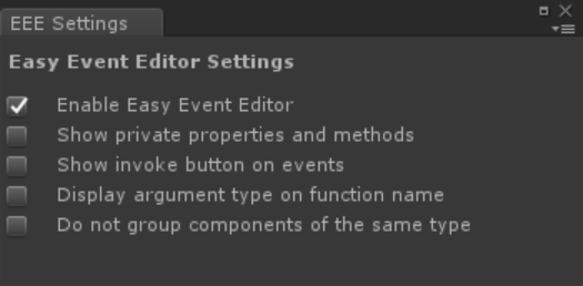 3. Open the settings menu under Edit->Easy Event Editor Settings, or in 2018.3 and up open your editor Preferences and find the Easy Event Editor section. These settings will persist between projects, though you'll need to re-import the event editor script.