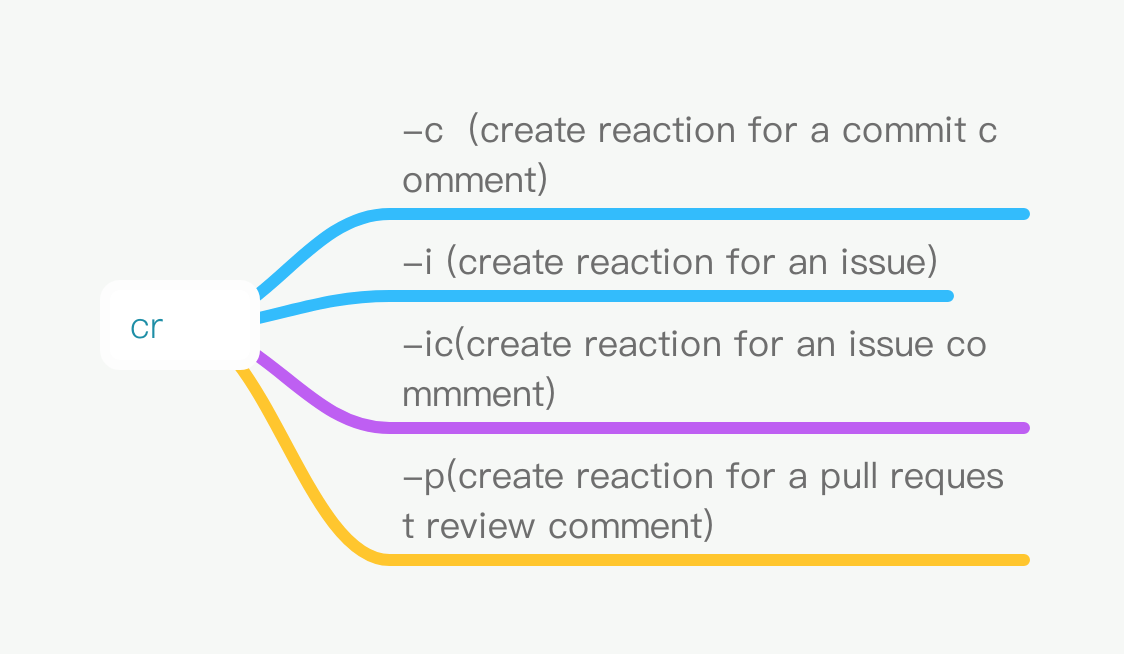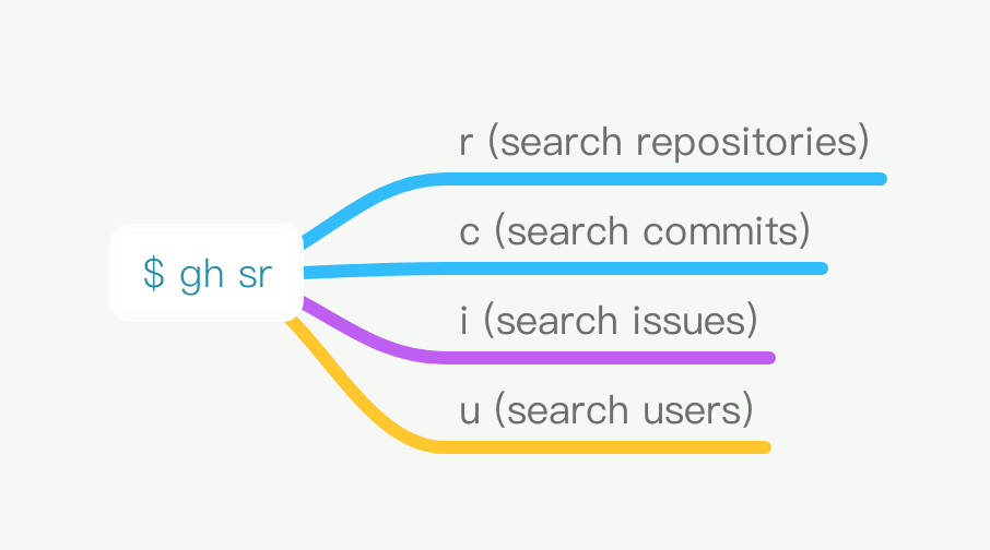 Currently, this command line tool has supported the main types of github actions, such as search, repositories, pull request, pesonal user, reaction, issues.The usage detail of these commands scope as follows: