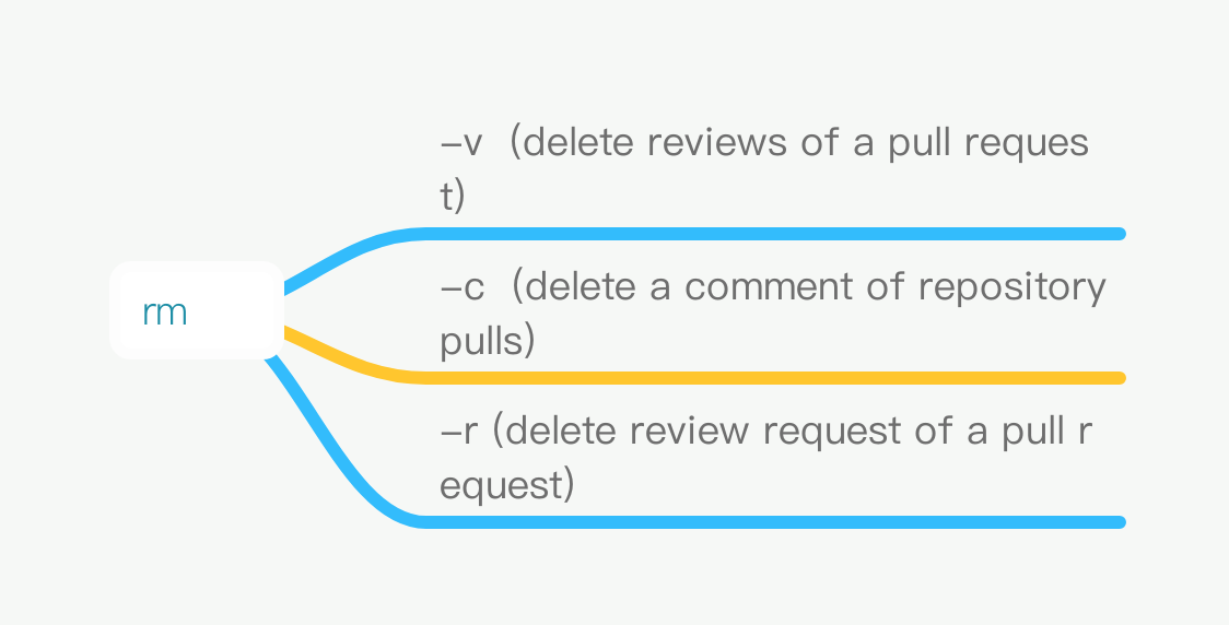This child command is for making delete actions for pull request,it support following child options: