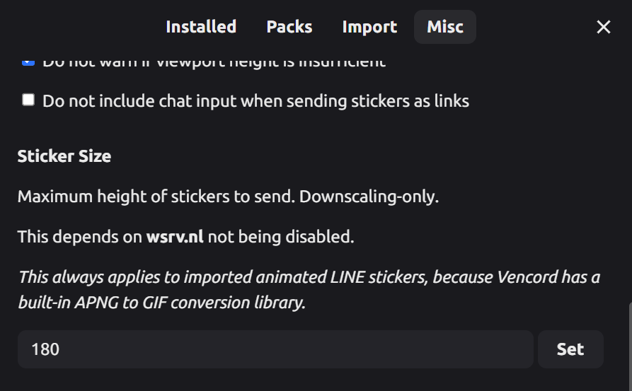 template(andthumbsTemplate):%idencoded%for the URL, but encoded, to better support usingwsrv.nland similar services for custom packs.%size%for user-configured stickers max height, to better support dynamically resizing custom packs.Linked samples in previous sections actually already used them.