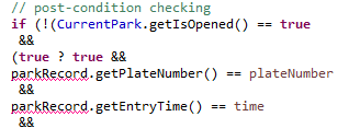 生成的代码中的存在两个重复的postcondition cheking,一个在判断语句内所以找得到临时变量,一个在外面会报错。