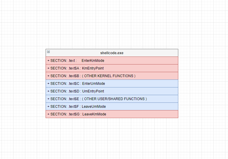 LeaveUmModeandEnterUmModefunctions. - Safely allow the usermode code to still use the string hashing and pe parsing functions without having to modify the instruction pointer (RIP/EIP) relative jumps and calls within its virtual address space of the target process.