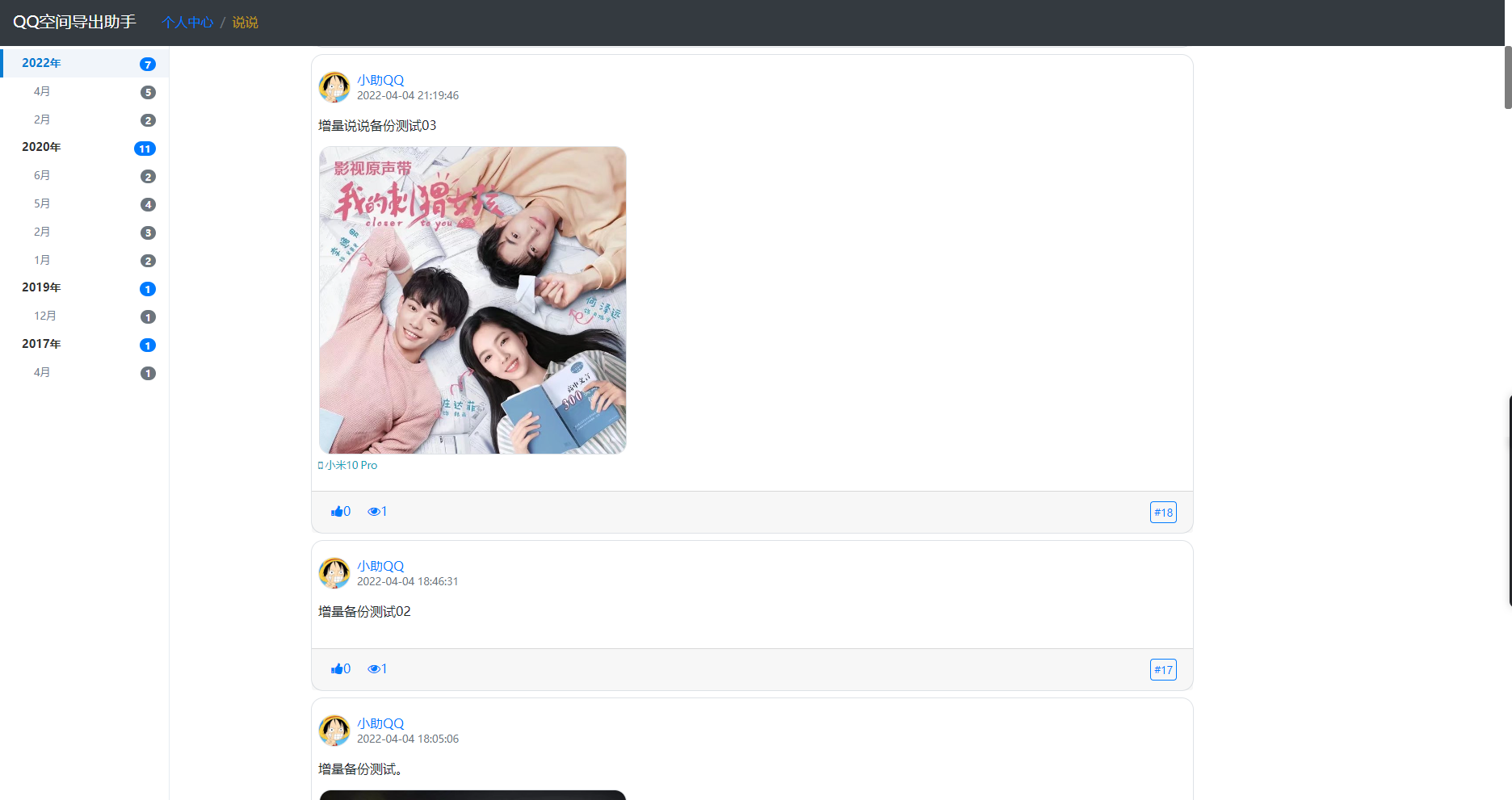 8、支持备份QQ空间分享内容,以及评论、点赞、最近访问