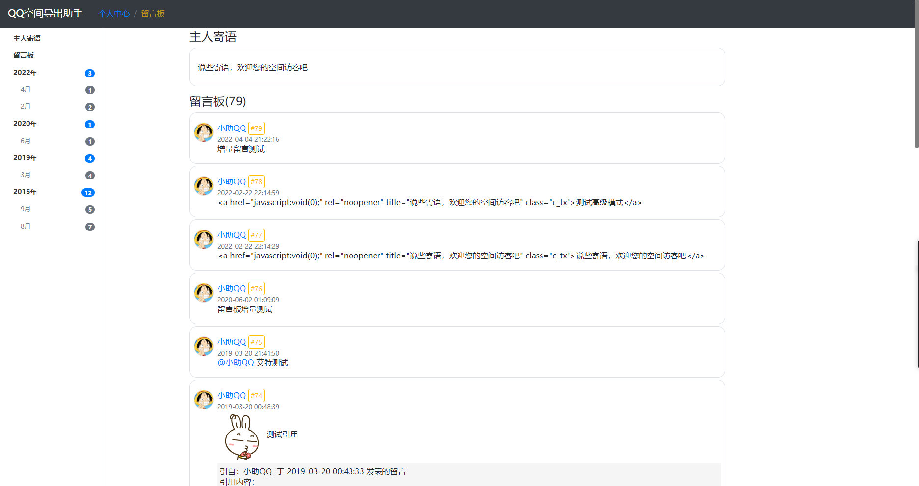 6、支持备份QQ空间留言寄语与留言、以及留言回复
