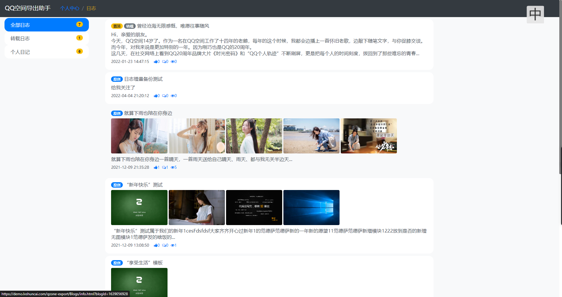 3、支持备份QQ空间文字日记、图文日记,以及评论、点赞、最近访问
