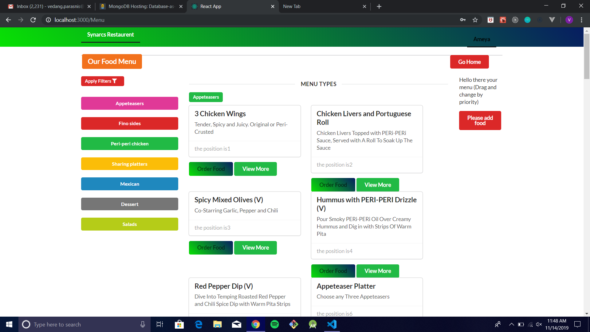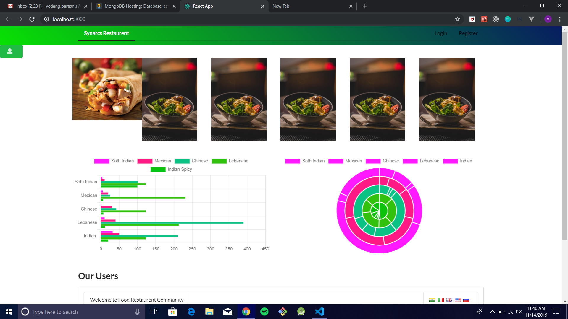 - At the same time we have also worked on many utility features like ordering food online 📱, building user profiles to write reviews 💬 on the food we serve and much more. We will analyse the reviews from the customers and also the most popularly ordered food at our restaurant, based upon this we generate statistical charts to keep improving!