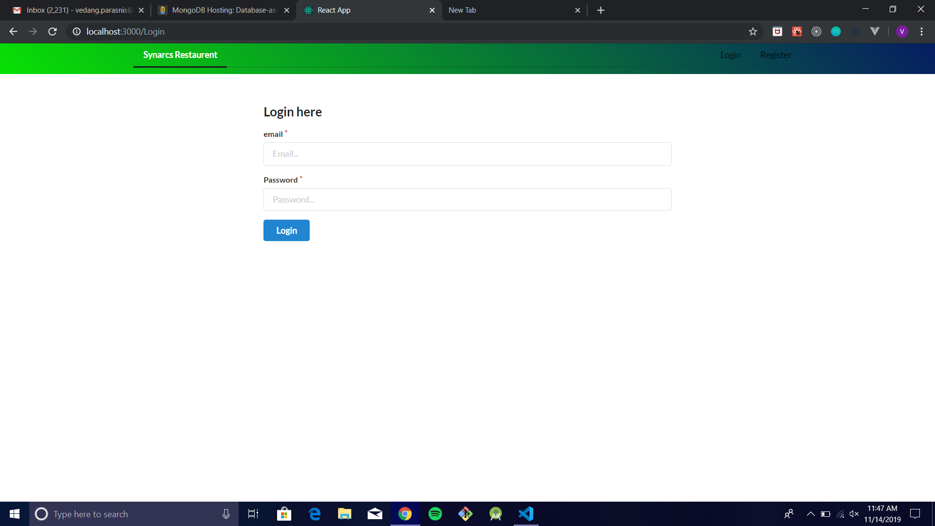 - Login, Registration and Authentication 💂♂️: Once a user registers on the webpage, his/her data will be securely stored on the mLab database. The user’s session will then begin(valid for 24hrs.) and he/she can then securely browse through our website, complete profile, order food, write review after ordering food. The webpage supports multiple user sessions. Once a user logouts, his/her session expires and the data is securely backed-up to the database. Again to use the services the user has to login, where he will be authenticated, once that is done successfully, he can proceed to the services.