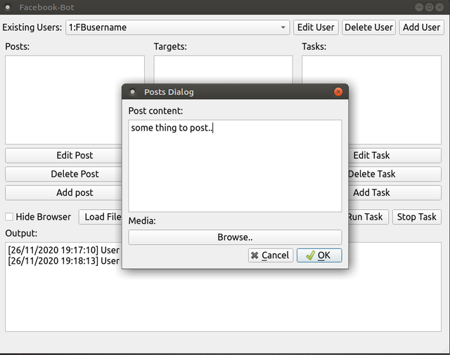 Making publishing posts on Facebook easier and faster by using a bot posting to many pages very fast, getting a list of group members out of Facebook group and even scheduling posts to different dates and hours. The bot was built using pure python with selenium as the client, SQLite3 for database and PyQt5 for GUI.