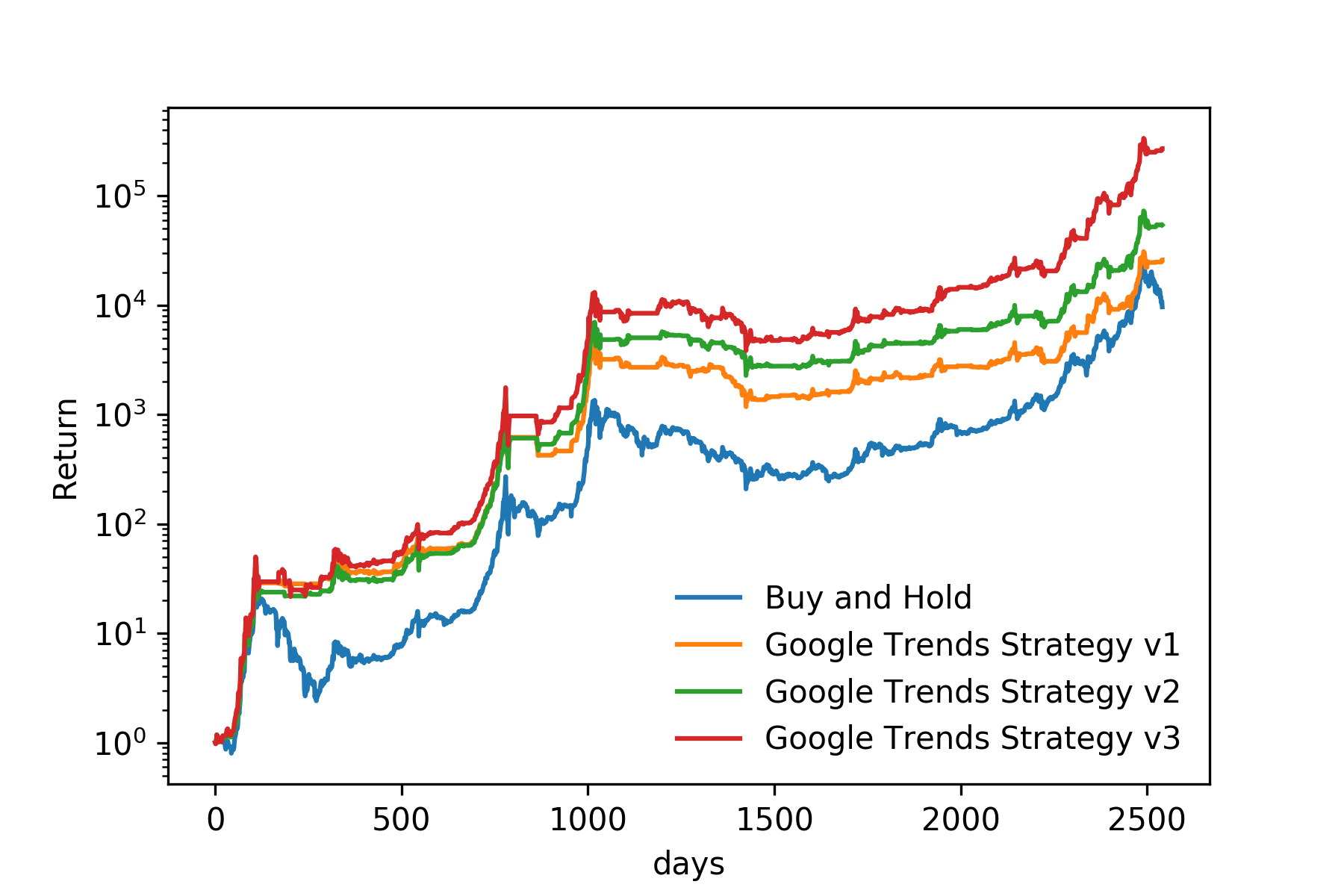 Version 3 is similar to version 2. But the parameters are separated in BULL and BEAR market. BULL/BEAR are determined by the derivative of the google trends data after applied a savgol fitering.