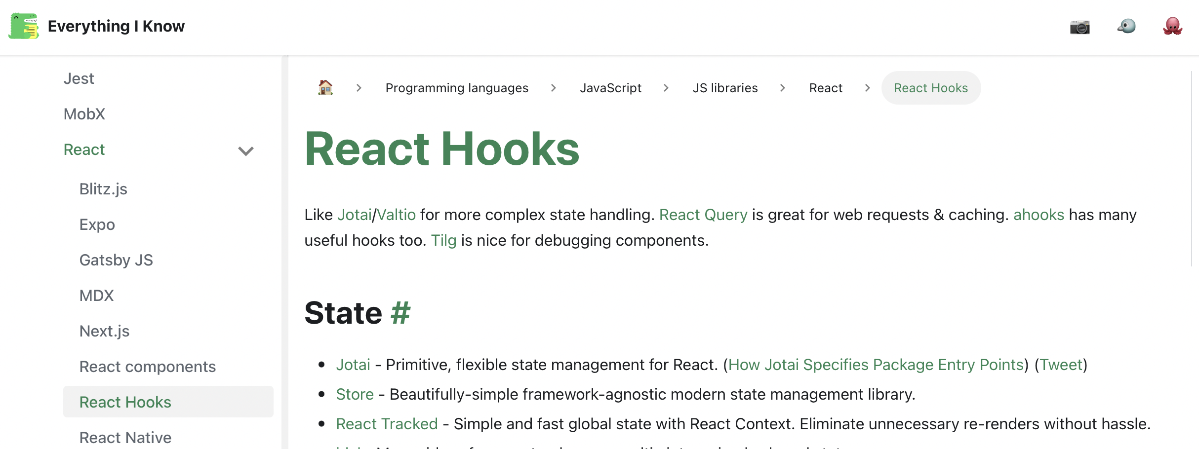Take React Hooks page.