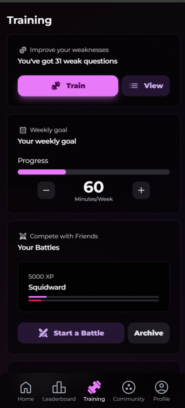 - Training mode on low confidence questions