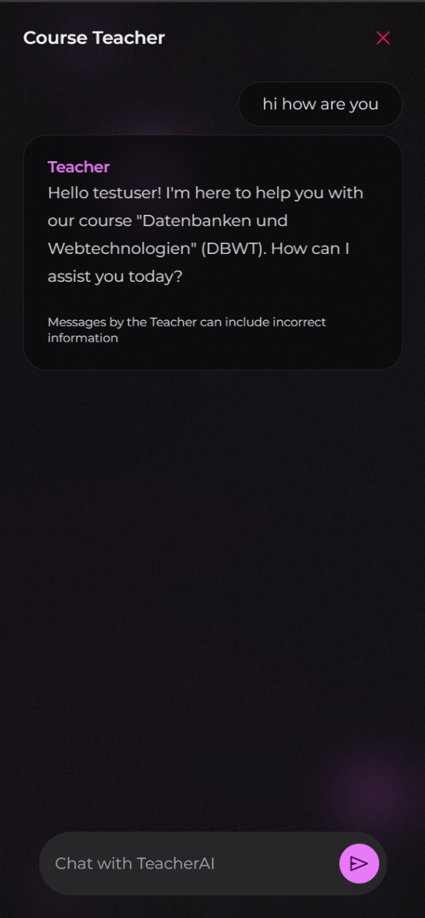 Edit: For the Teacher AI, your username and the course you're currently in gets send to the AI, so it can give you more personalized answers. Again, Mistral Free Tier, so this data is used by Mistral to train their Models.