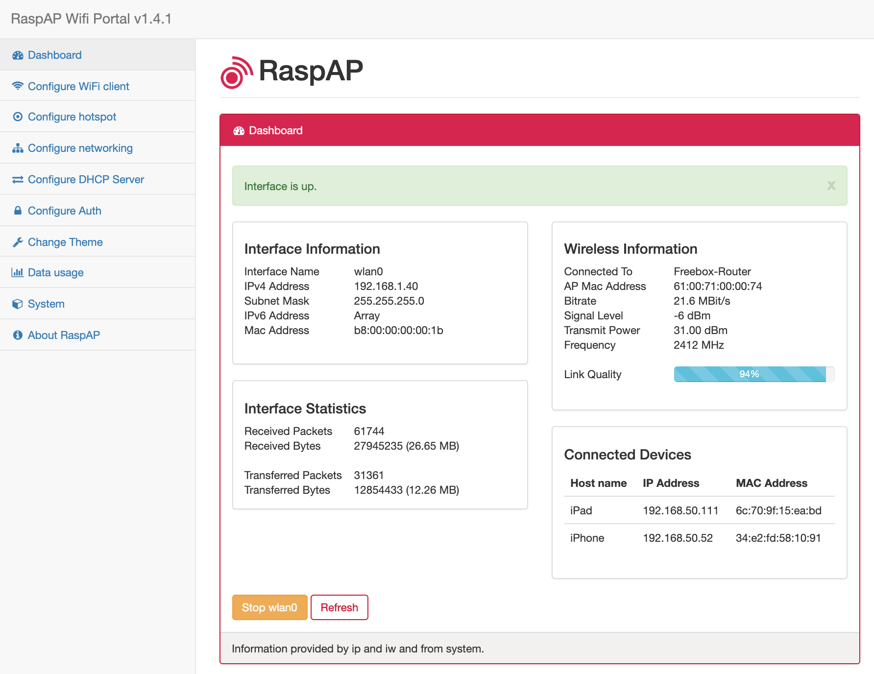A simple, responsive web interface to control wifi, hostapd and related services on the Raspberry Pi.
