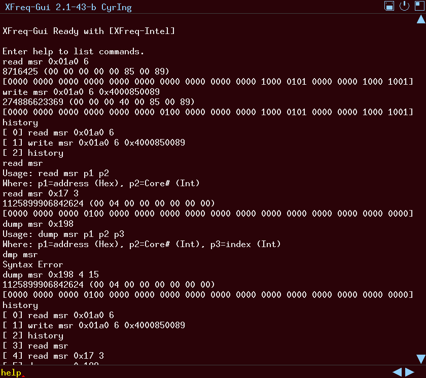 [Yes]|[No]and their activation state[ON]|[OFF] - Read and write MSR registers