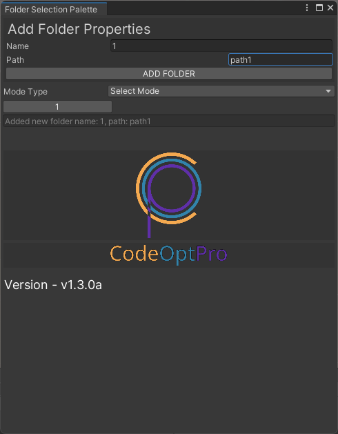 - c. ADD FOLDER - Once you have given the name and the path this button will be enabled. Clicking this button will add a folder selection button below and the name will be same as the name given while adding. The image Fig: Added Selection Button below shows how it looks like when a selection button is added.