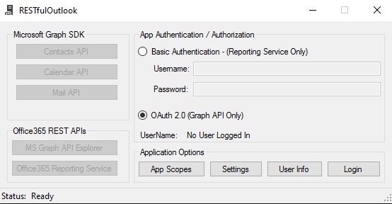 This sample app is a .net/winform tool to test making REST calls for Outlook/Exchange data, using either the Microsoft Graph SDK or sending the calls directly to the Microsoft Graph endpoint, similar to the MS Graph Explorer.