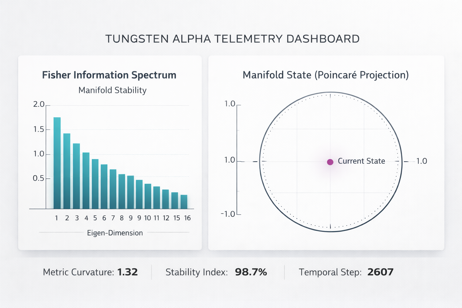 Tungsten Alpha was built to move beyond the limitations of standard backpropagation. It understands the light by calculating its own curvature.