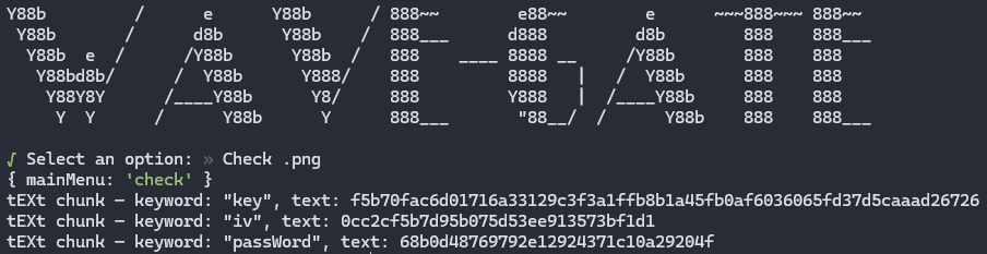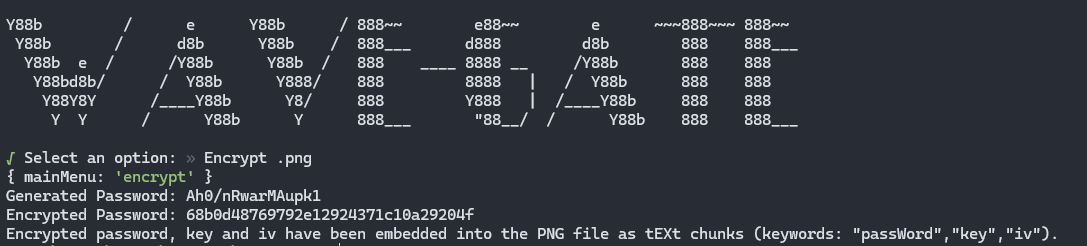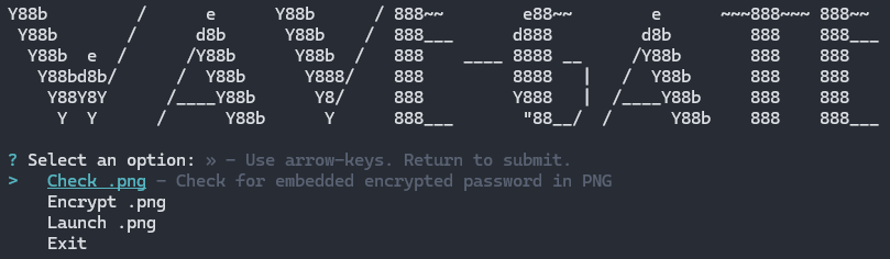 - After the encrypt function is used, run the check function again to confirm a password is saved to the .png.