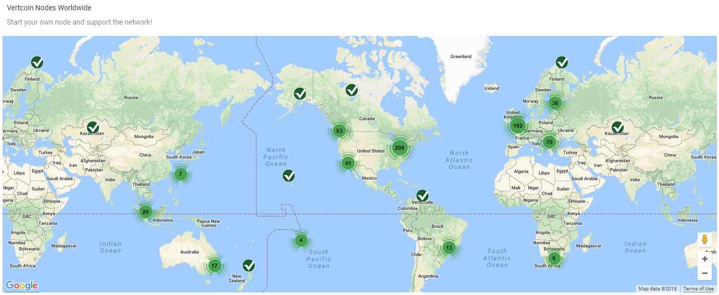 Vertcoin’s peer-to-peer network is composed of network "nodes," run mostly by volunteers. Those running vertcoin nodes have a direct and authoritative view of the vertcoin blockchain, with a local copy of all the transactions, independently validated by their own system and can initiate transactions directly on the vertcoin network.