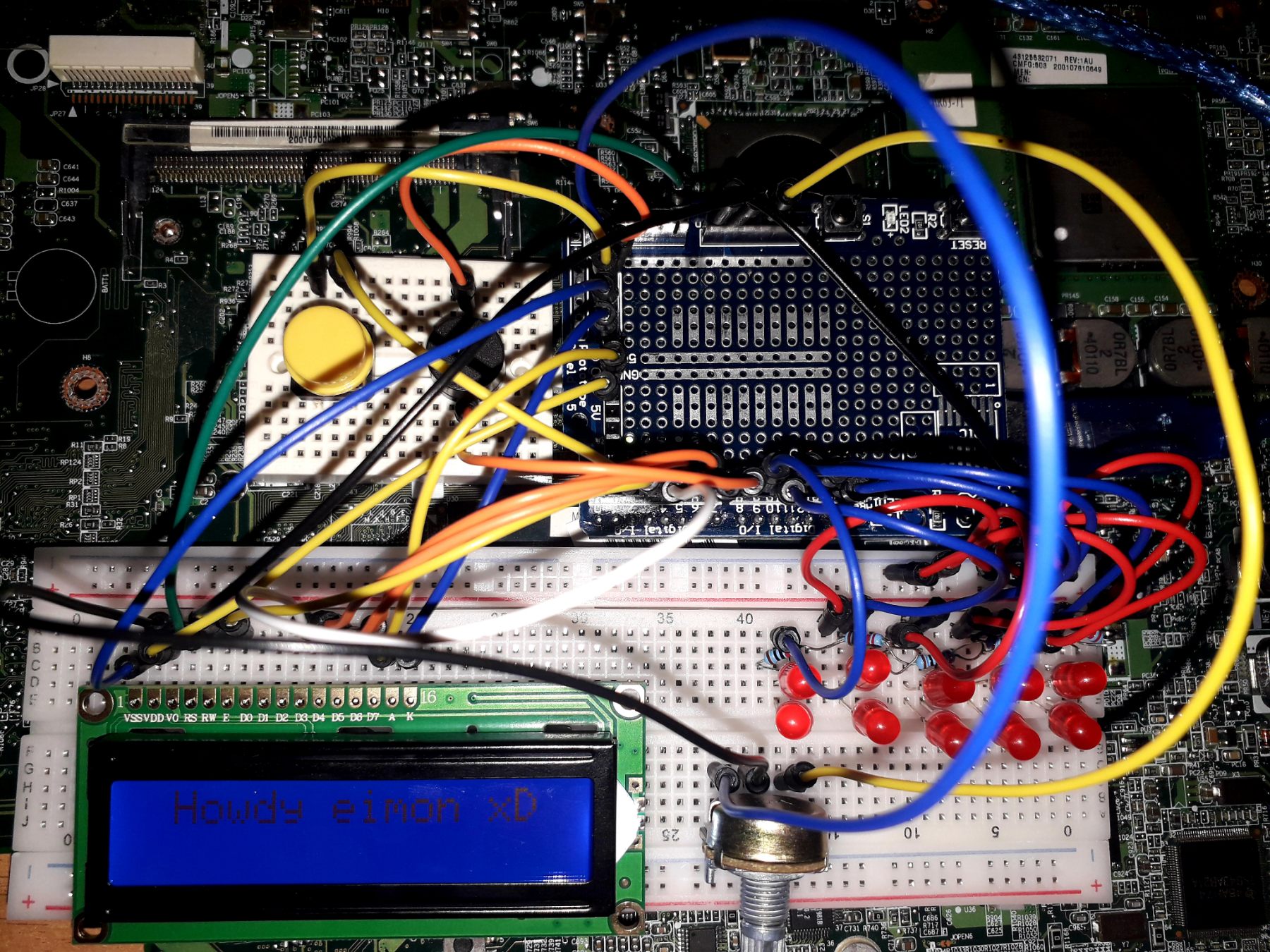 Demo: https://youtu.be/eYFiAREKqzU https://youtu.be/v_QbSqO8X6E You can find some useful stuff here: https://github.com/eimon96/Arduino_Coursera/tree/main/formula1_startingLeds https://www.makerguides.com/character-lcd-arduino-tutorial/ https://www.youtube.com/watch?v=FtT9IV1Q7Dg