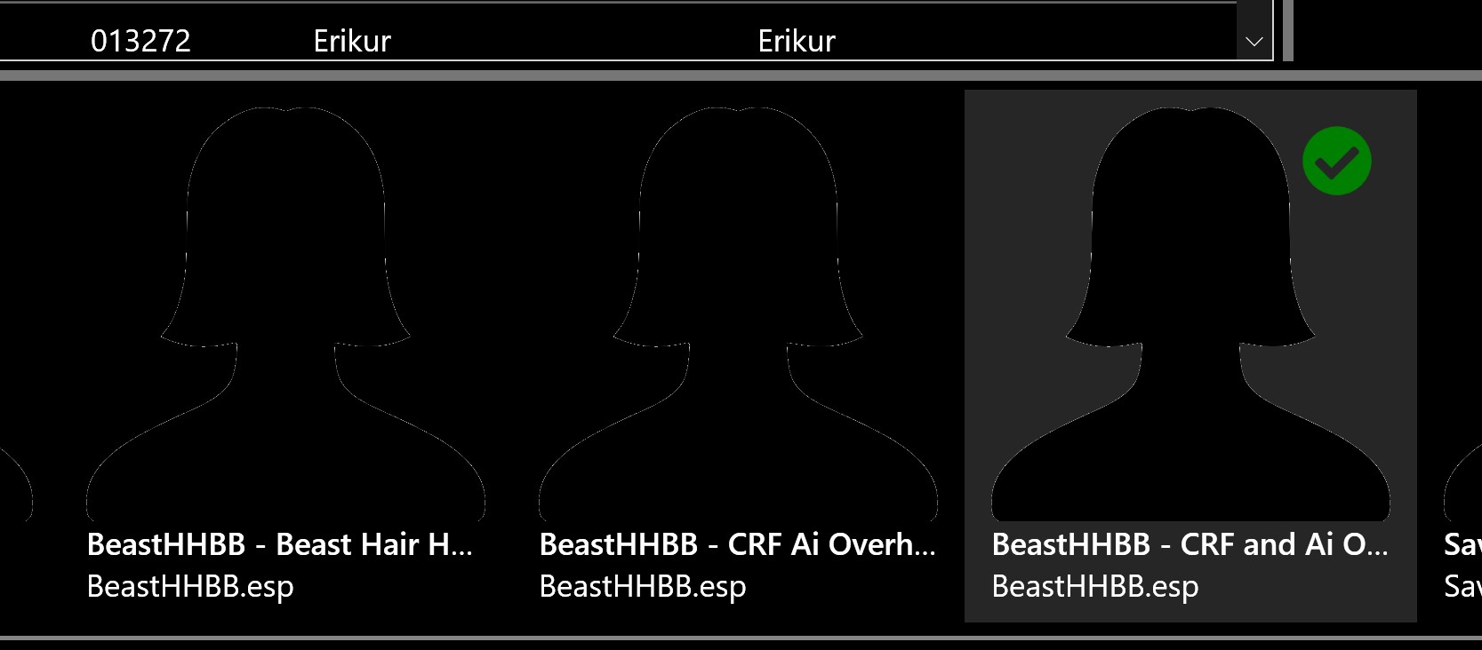 Thanks, I can see this as well. The reason this happens is because the plugin does not actually include the NPC. The mod has a facegen file, and that facegen file actually uses non-vanilla head parts, but there are no record edits. This will probably trigger blackface; if it somehow manages to escape blackface, it's still a dangerous edit. The mod author mentions something about this particular NPC in the sticky post, but doesn't go into detail about what that issue is. Maybe the facegen was left in accidentally at one point and could even have been removed from the mod sometime after I created the mugshots. Note that when I create these mugshots, I go by facegen files alone, I'm not paying any attention to whether or not there are accompanying record edits. NifSkope doesn't care what the names of the head parts are, but Skyrim definitely does. I'll think about how to present this a little better, as I agree that displaying "Plugin not loaded" is pretty misleading when the plugins are definitely loaded for that mod. In a technical sense, what the error is really telling you is, "I couldn't find any plugin belonging to this mod that edits this NPC", which is true, but like I said, kind of confusing. The short answer, though, is that this is working as intended. You can't use that particular mod for that particular NPC. You can try, if you want, by choosing a different face plugin and ctrl+double clicking the thumbnail to force it to use that facegen - but you'll probably get blackface if you do. |