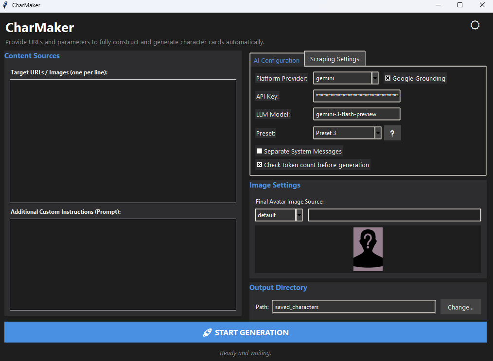 This open-source tool helps you create a desired character by appending to AI the website scraped content and inserted images, generating its
