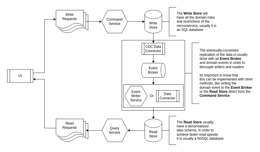 - command: The writer service, it uses a relational PostgreSQL database