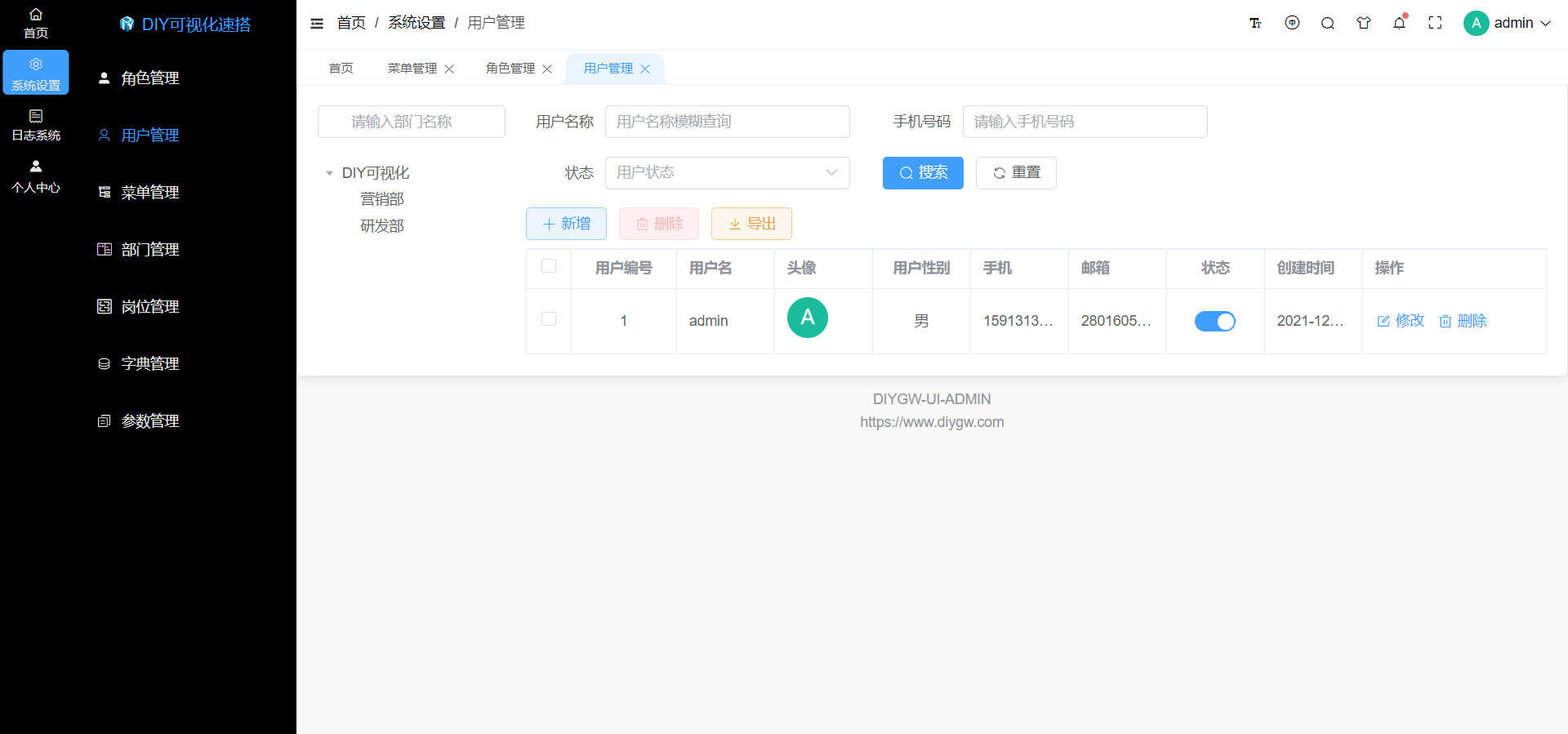 6、结合diygw-ui-admin生成管理界面 你的域名/admin/index.html 输入用户名密码即可访问