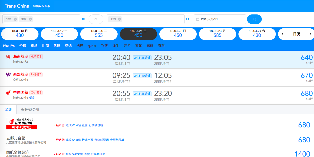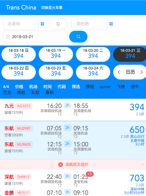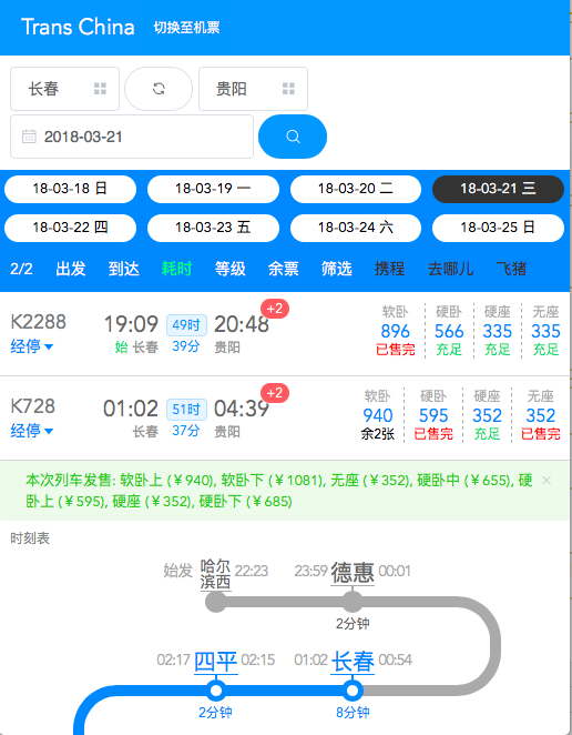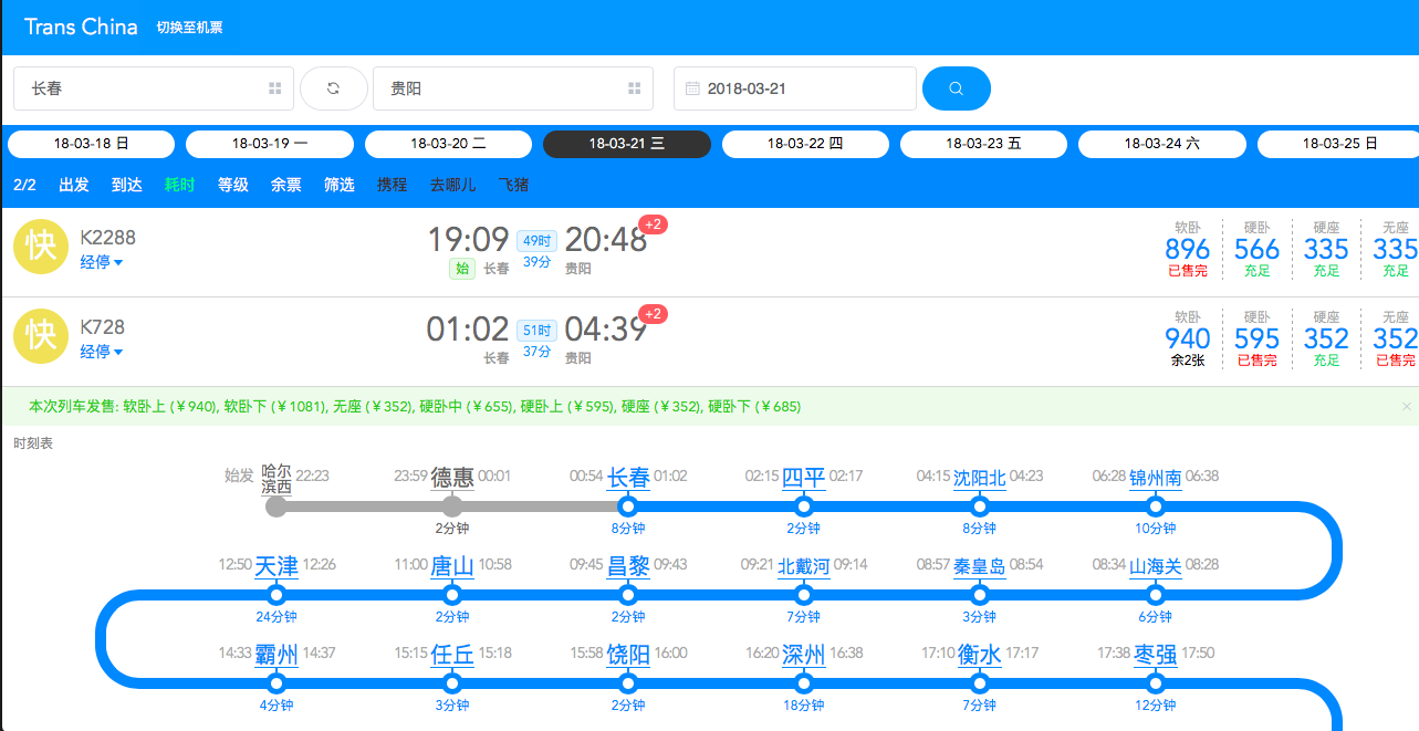 - Quick switch of the query page of train and flights