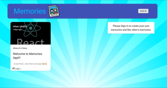 Memories app is a website where people can share their memories in the form of a post and others can view and react to their post.