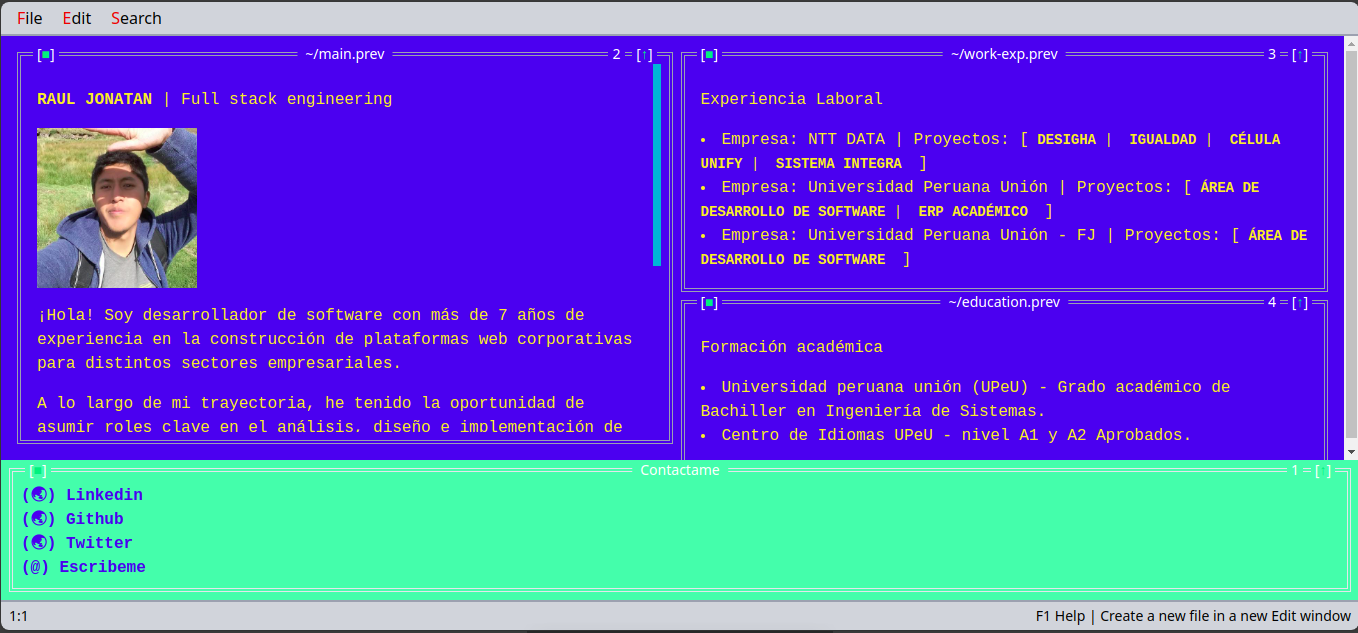Welcome to my personal portfolio! 🚀 This project showcases my work and skills in software development, designed with a retro inspired by the classic Borland C++ IDE development environment.